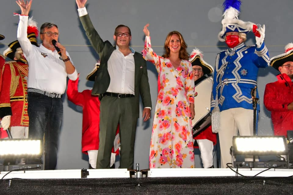 Das Geheimnis ist gelüftet: Im Rahmen eines abwechslungsreichen Unterhaltungsprogramms präsentierte das Comitee Düsseldorfer Carneval e.V. heute Abend erstmals im Autokino das neue Prinzenpaar: Dr. Dirk Mecklenbrauck und Uåsa Katharina Maisch. Aufgrund der Beschränkungen durch die Coronakrise mussten die zahlreichen Repräsentanten der örtlichen Karnevalsvereine die Vorstellung der künftigen Tollitäten durch CC-Präsident Michael Laumen und Oberbürgermeister Thomas Geisel in ihren Fahrzeugen verfolgen. Statt dem neuen Prinzenpaar zu applaudieren, huldigten die zahlreichen Jecken aus den etwa 450 Autos dem designierten Prinzenpaar mit einem lautstarken Hupkonzert.