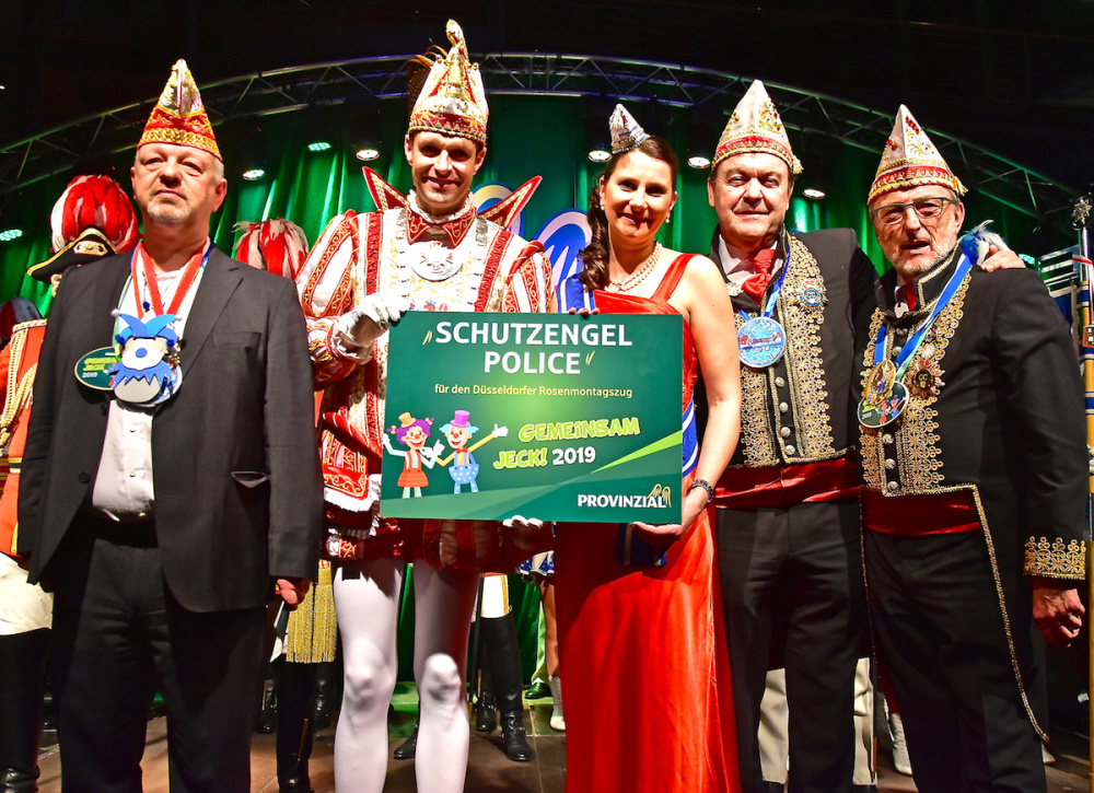 Nun fehlen nur noch Sonnenschein und blauer Himmel: Der Rosenmontagszug, der Höhepunkt des Düsseldorfer Karnevals, ist rundum abgesichert. Im Rahmen eines närrischen Empfangs in der Provinzial-Hauptverwaltung nahmen Prinz Martin I. und Venetia Sabine gemeinsam mit CC-Präsident Michael Laumen und Geschäftsführer Hans-Jürgen Tüllmann die „Schutzengel“-Police der Provinzial entgegen. Überreicht würde die symbolische Police durch Patrik Fedlmeier. Der Vorstandsvorsitzende der Provinzial Rheinland betonte in seiner Ansprache, dass sein Unternehmen damit seit mehr als 35 Jahren nicht nur denr Rosenmontagszug, sondern auch den großen Kinder- und Jugendumzug am Karnevalssamstag sowie das Kö-Treiben am Karnevalssonntag versichere. Das Prinzenpaar der Landeshauptstadt Düsseldorf und CC-Präsident Laumen dankten der Provinzial für die großzügige Unterstützung und betonten, dass eine solche Wertschätzung des Winterbrauchtums keineswegs selbstverständlich sei. Die Tatsache, dass mit Patric Fedlmeier und Martin Meyer zwei Repräsentanten sowohl der Provinzial- als auch die Allianz-Versicherung auf einer Bühne standen, veranlasste Venetia Sabine zu der Bemerkung: „Da sieht man doch, dass unser Motto ‚Düsseldorf – gemeinsam jeck“ bestens funktioniert.“ Eingebettet war die Übergabe der Police in ein abwechslungsreiches Unterhaltungsprogramm. Über 400 geladene Gäste freuten sich über die Darbietungen u.a. von Alt Schuss, der KG Regenbogen und der Swinging Funfares sowie der Prinzengarden Rot-Weiss und Blau-Weiss.